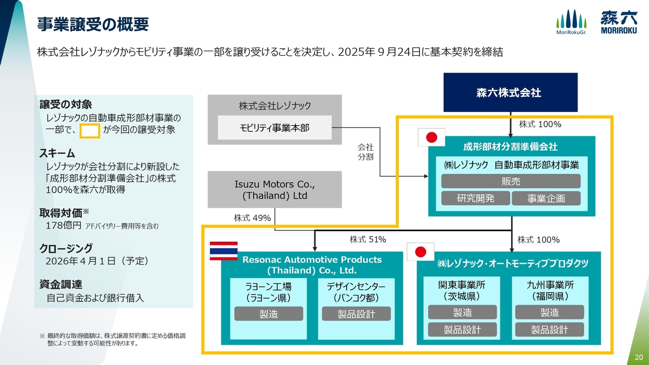 【QAあり】森六、レゾナックのモビリティ事業をM&A 両社の自動車内外装技術の融合でシナジー創出、中期成長加速へ