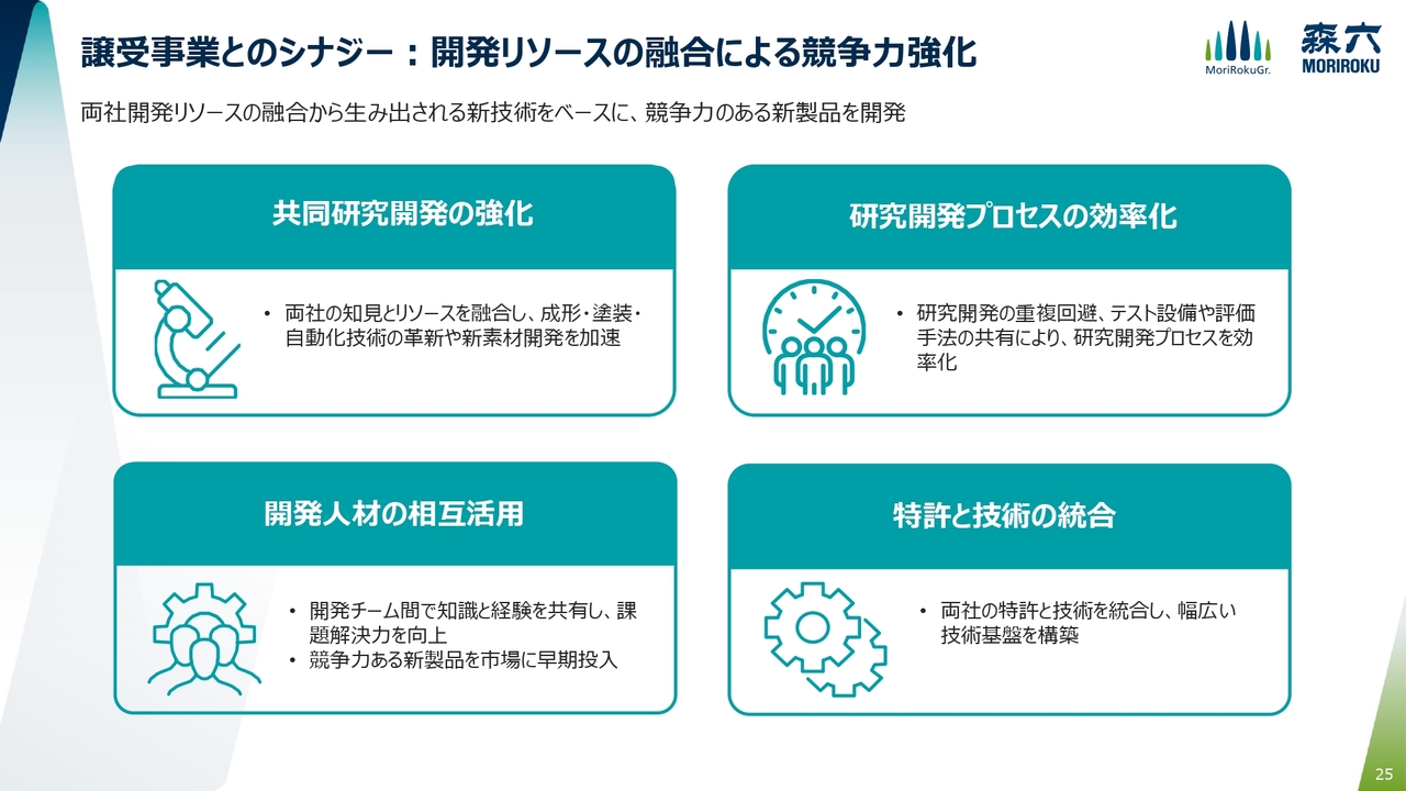 譲受事業とのシナジー:開発リソースの融合による競争力強化