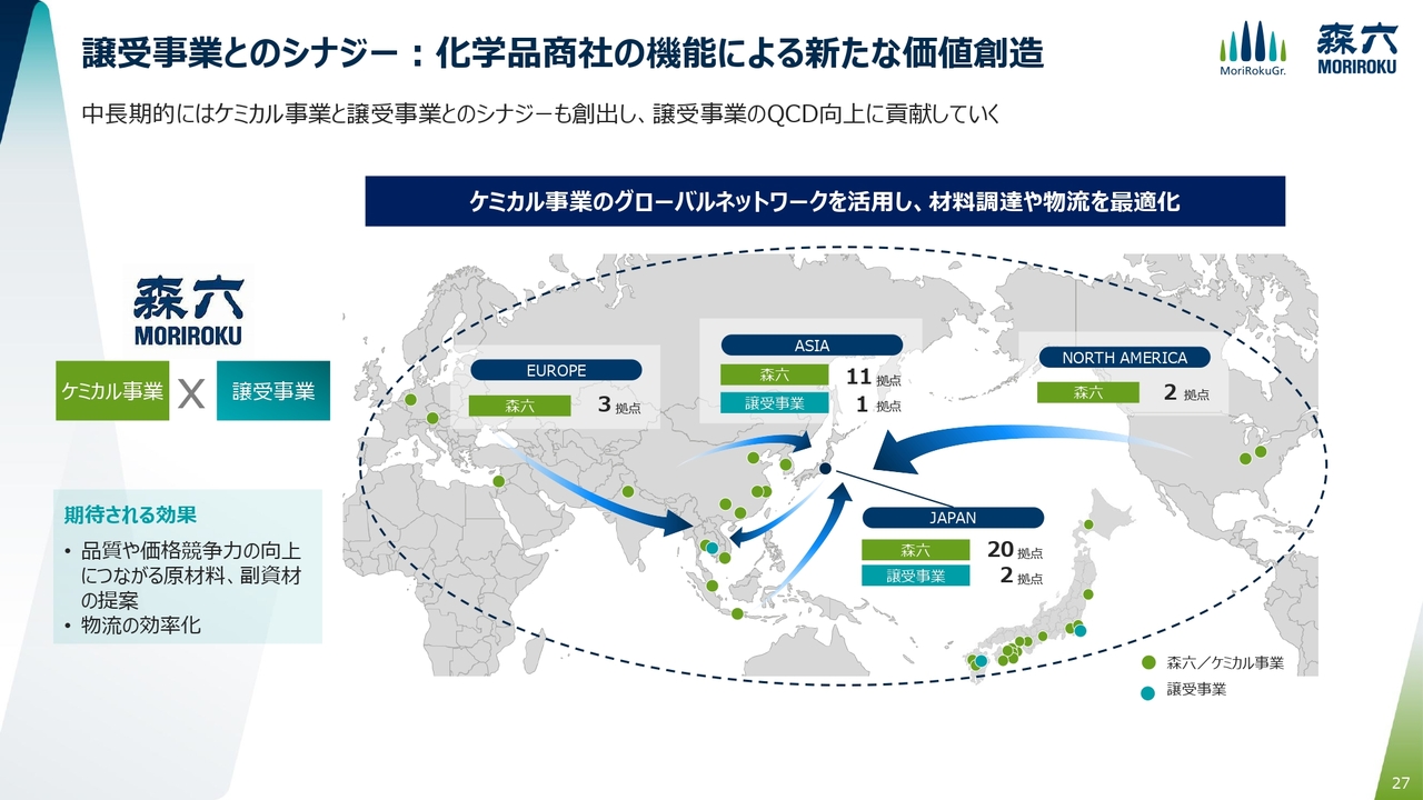 将来的には、ケミカル事業ともシナジーを生み出していきたいと考えています。ケミカル事業のグローバルネットワークを活用し、譲受事業のQCD向上につなげられるよう検討を進めていきます。