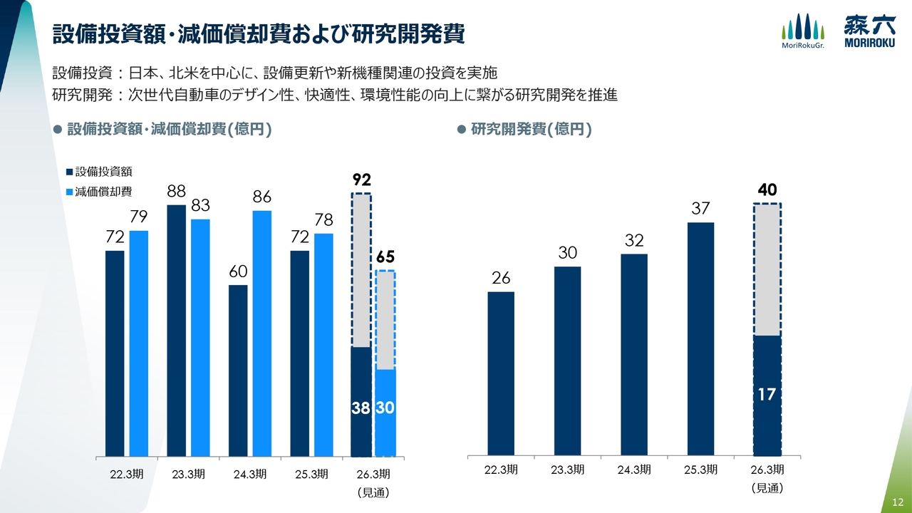 設備投資額と研究開発費についてです。設備投資は、北米でバッテリーEVの量産に向けた投資が後ろ倒しとなったため、期初に予定していた水準より抑えられています。
