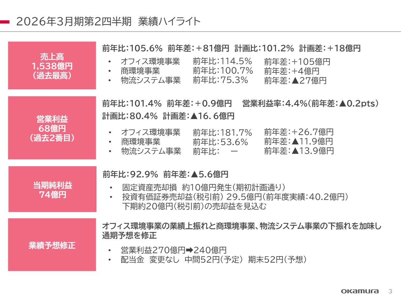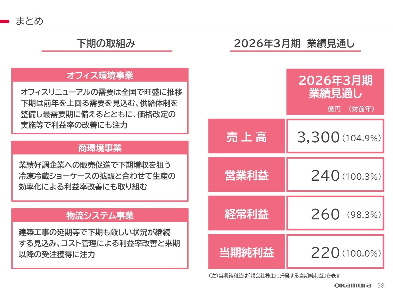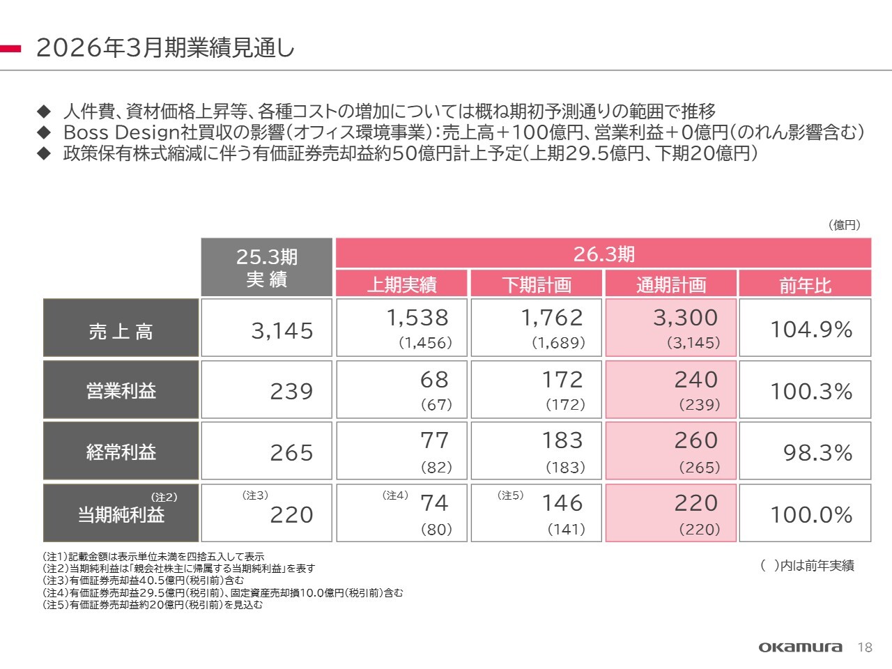 中村雅行氏:株式会社オカムラ代表取締役社長執行役員の中村です。みなさま、本日は大変お忙しい中、当社2026年3月期第2四半期決算説明会にご参加いただき、誠にありがとうございます。