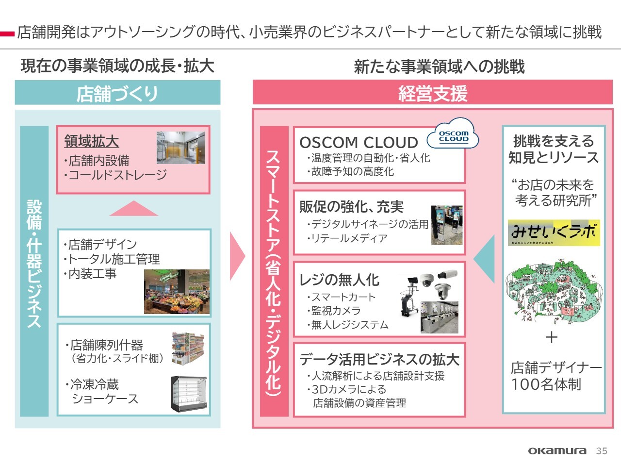 小売業は全体的にスマートストア化に移行しており、これに伴い投資も活発化しています。スライド右側に示しているとおり、温度管理の自動化、デジタルサイネージを活用した店舗づくり、レジの無人化といった取り組みが進んでいます。