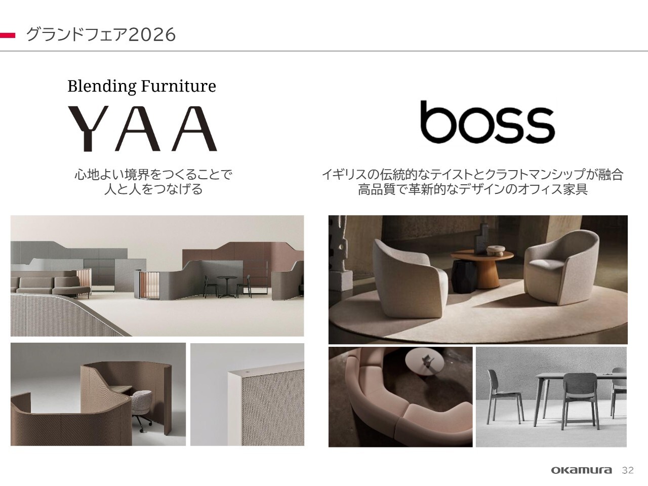 また、イギリスの伝統的なテイストとクラフトマンシップで作られた「Boss Design(ボス デザイン)」のオフィス家具についても、さらに拡販を進めていきたいと考えています。