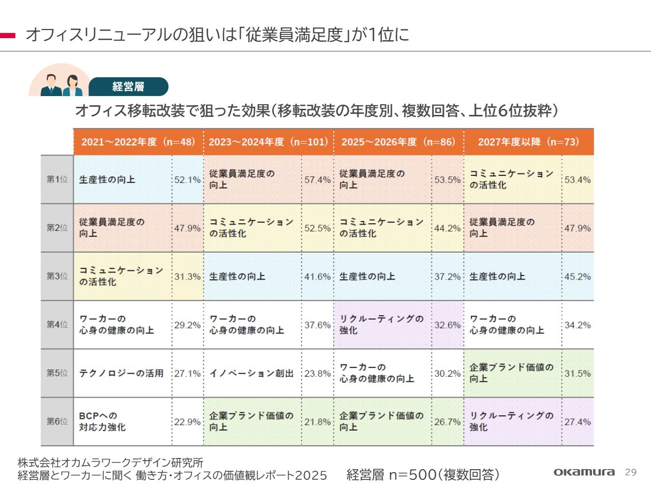 オフィスリニューアルの狙いは「従業員満足度」が1位に