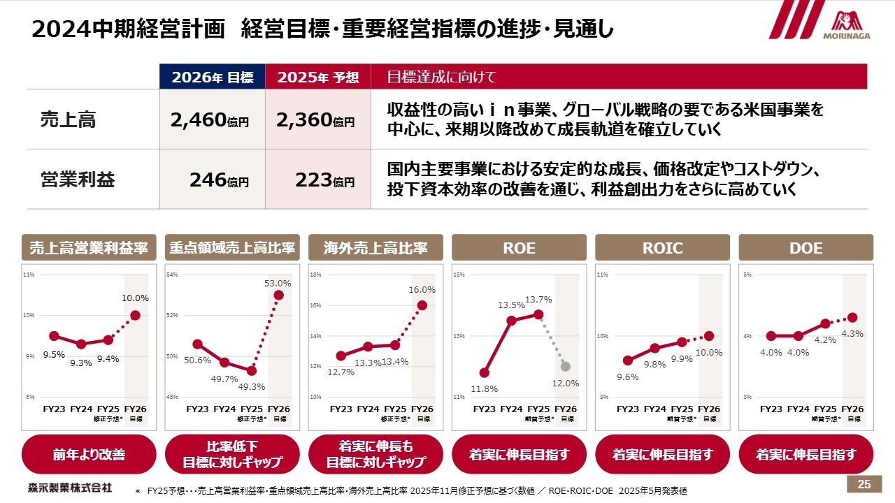 また、資本収益性については、2026年度に菓子食品事業のROIC8パーセント目標を達成すべく、着実に取り組んでいきます。