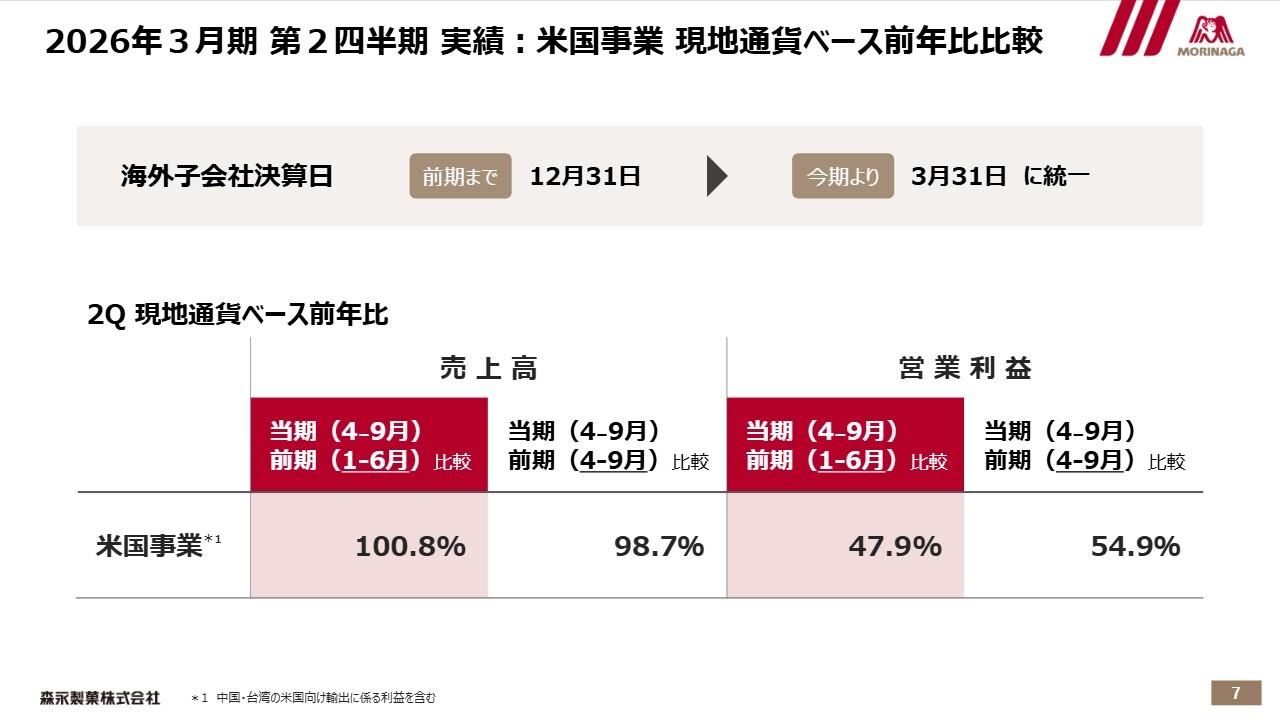 米国事業については、プレゼンで申し上げた打ち手が下期以降、徐々に花開いてくると考えています。2027年の新工場稼働に向けて、従来は抑制していたことも徐々にアクセルを踏んでいく方針ですので、来期にも伸びしろが期待できる状況です。