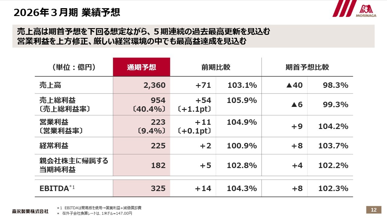 森信也氏:みなさま、こんにちは。森永製菓株式会社代表取締役社長COOの森です。本日はお忙しい中、当社2026年3月期第2四半期決算説明会にご参加いただき、誠にありがとうございます。
