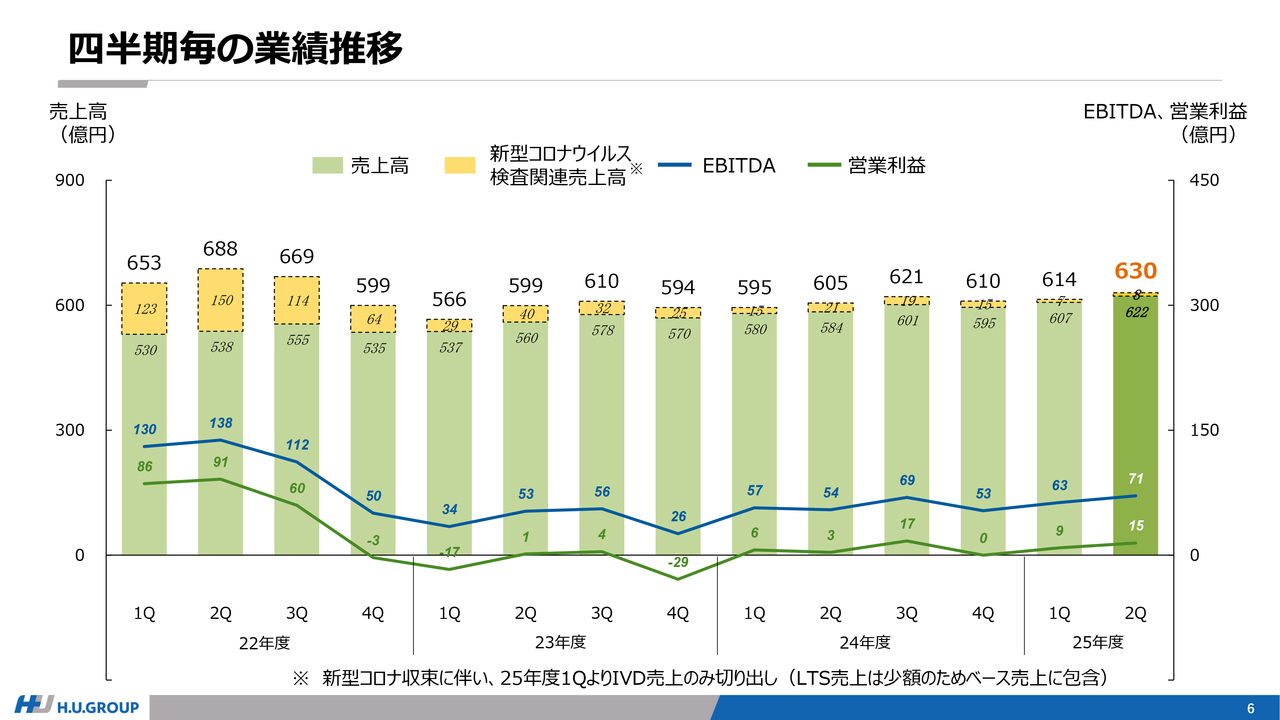 なお、新型コロナウイルス関連の売上は、ほぼ定常的となってきており、特にLTS事業では、四半期の売上規模が1億円程度で、数ある検査項目の中の1つというレベルになっています。