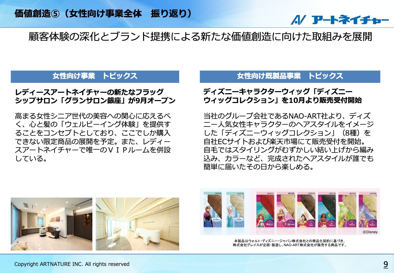また、ディズニーキャラクターウィッグなど、新たな価値創造に向けた取り組みも引き続き展開し、業績への貢献を目指していきます。