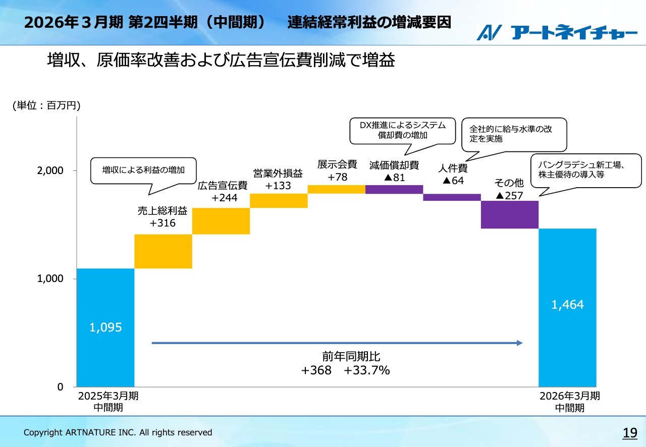 内藤功氏(以下、内藤):アートネイチャー常務取締役の内藤です。本日は、私どものWeb決算説明会をご視聴いただき、誠にありがとうございます。まず、私から2026年3月期上期決算の概況と中期経営計画の進捗状況についてご説明します。