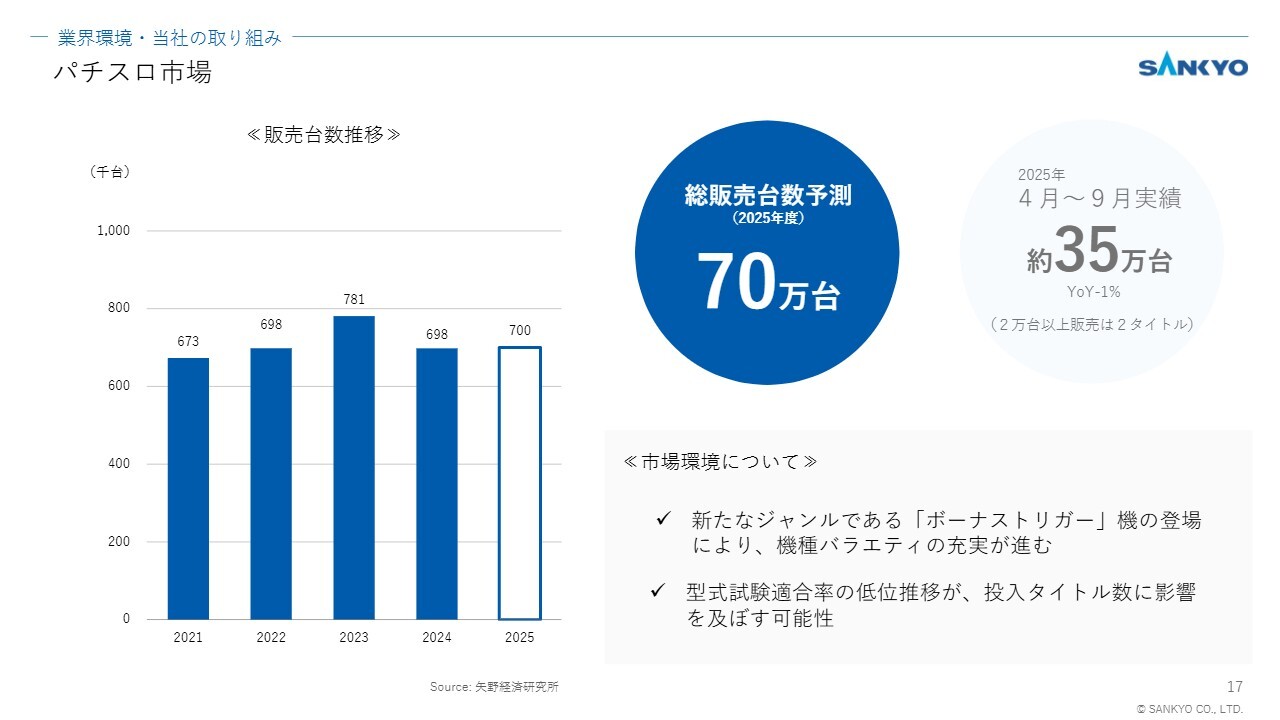 一方で、市場をさらに活性化させるためには、継続的なヒット機種の登場が不可欠であると認識しています。