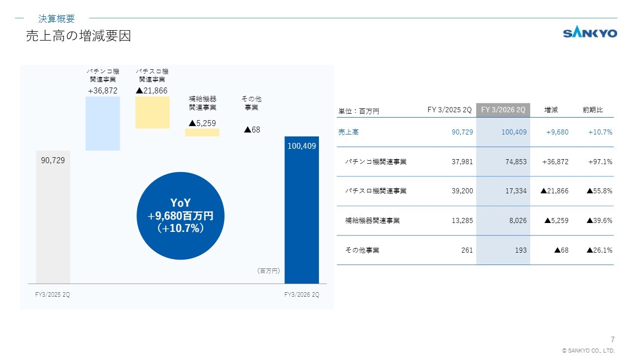 まずは業績ハイライトです。2026年3月期第2四半期の業績は、主にパチンコ機販売台数の伸長により、前年同期比で増収増益となりました。上期業績は、通期計画の達成に向けて順調に進捗しています。