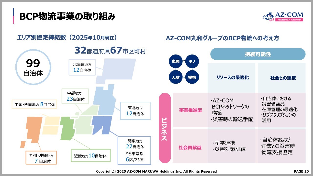 また、今後は物流センターへの免震装置の導入を徹底して進めていきます。スライド右下の画像が免震装置ですが、現在これを導入している施設は少ない状況です。しかし、当社がBCP(事業継続計画)を戦略的に拡大していくためには、このような投資を行うことが不可欠です。これにより、お客さまからの評価を得ることが重要だと考えています。