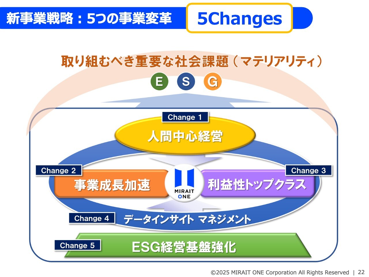 事業戦略の柱となる5つの事業変革「5 Changes」について示しています。
