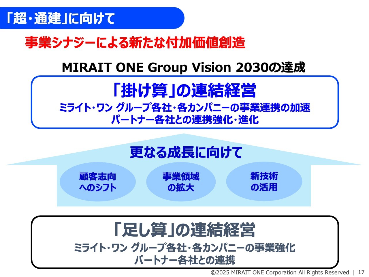 今後は、各社・各カンパニーの事業間でのシナジーを生み出すために、「掛け算」の連結経営を加速していきたいと思っています。