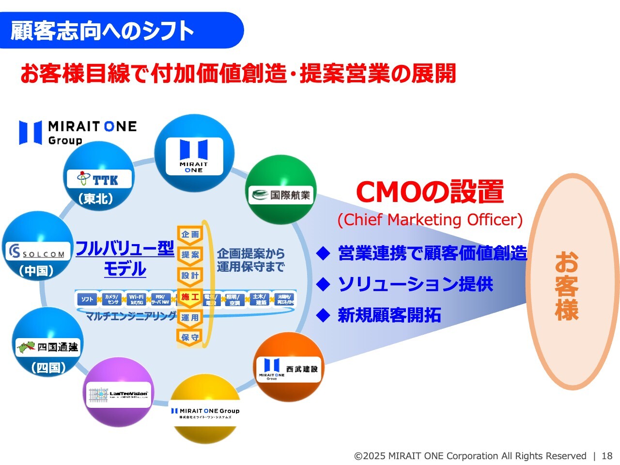 これらの取り組みを加速させるために、この度、グループのCMO(Chief Marketing Officer)を設置しました。CMOは、顧客志向のマーケティングや営業展開をリードしてもらう予定です。具体的には、現在ソリューションカンパニー社長である髙屋がCMOとしてその役割を担います。