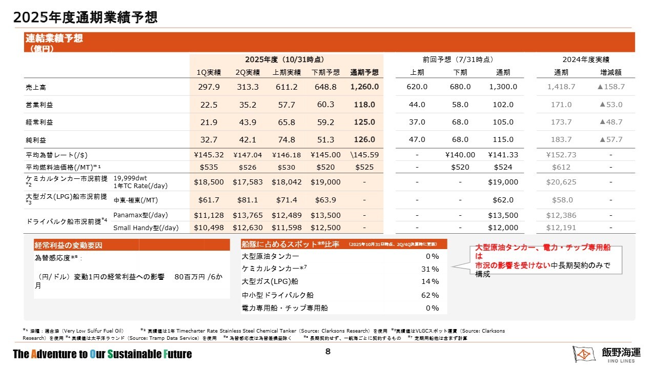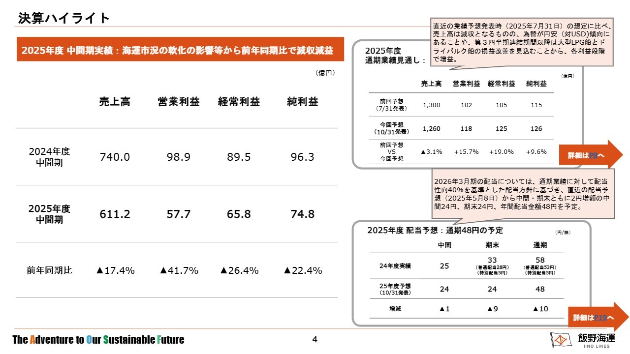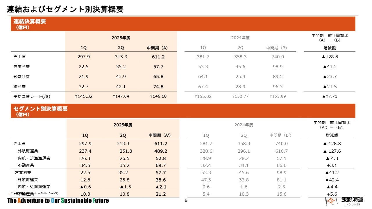 大谷祐介氏:みなさま、おはようございます。飯野海運株式会社代表取締役社長の大谷祐介です。本日はご多忙の中、2025年度中間期決算説明会にご参加いただき、誠にありがとうございます。