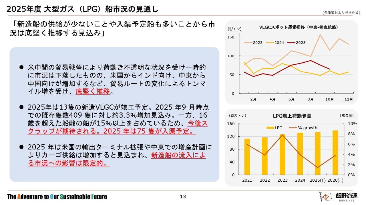 需要面では、2025年下期に予定されている米国の輸出ターミナルの拡張に加え、中東での増産計画もあり、輸送需要の増加を見込んでいます。
