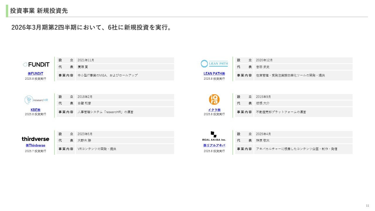 投資事業 新規投資先