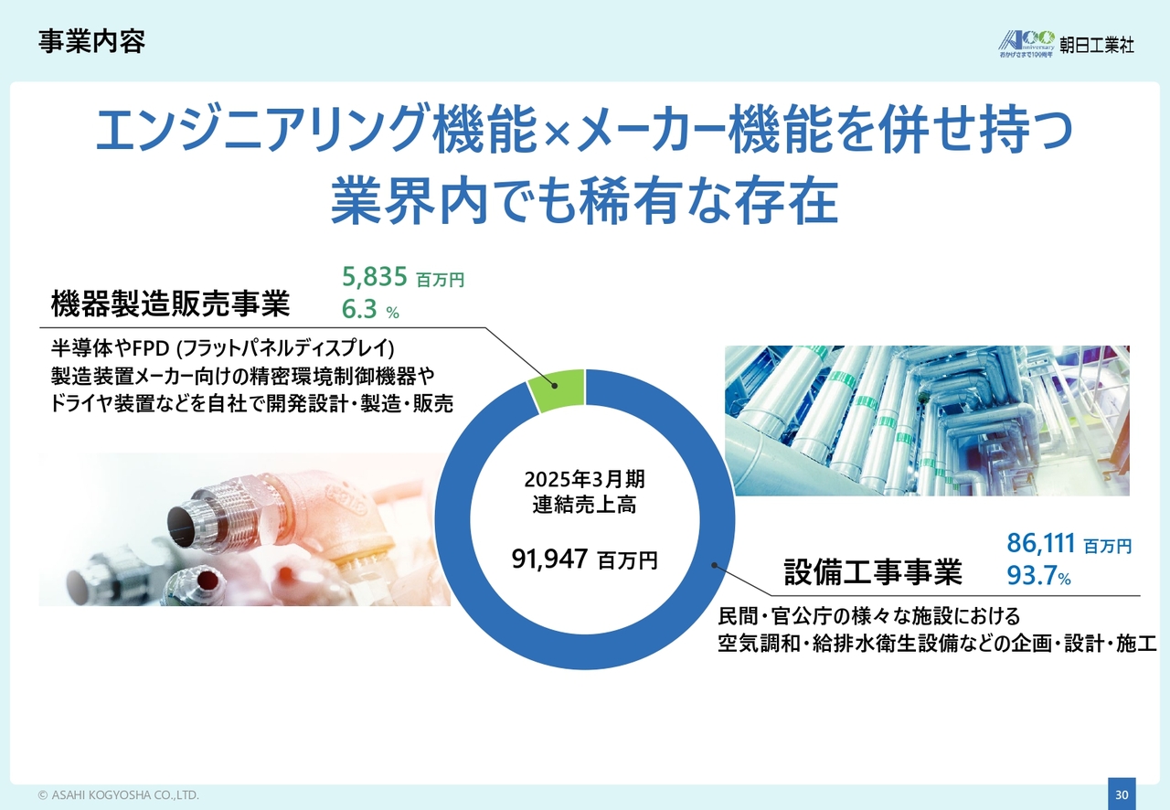 一方、機器製造販売事業の売上については、半導体製造装置向け製品が増加しました。なお、ドライヤ関連製品については、2025年3月期の大型受注分が納品時期の影響で、来期以降の2027年3月期から売上に計上される予定です。