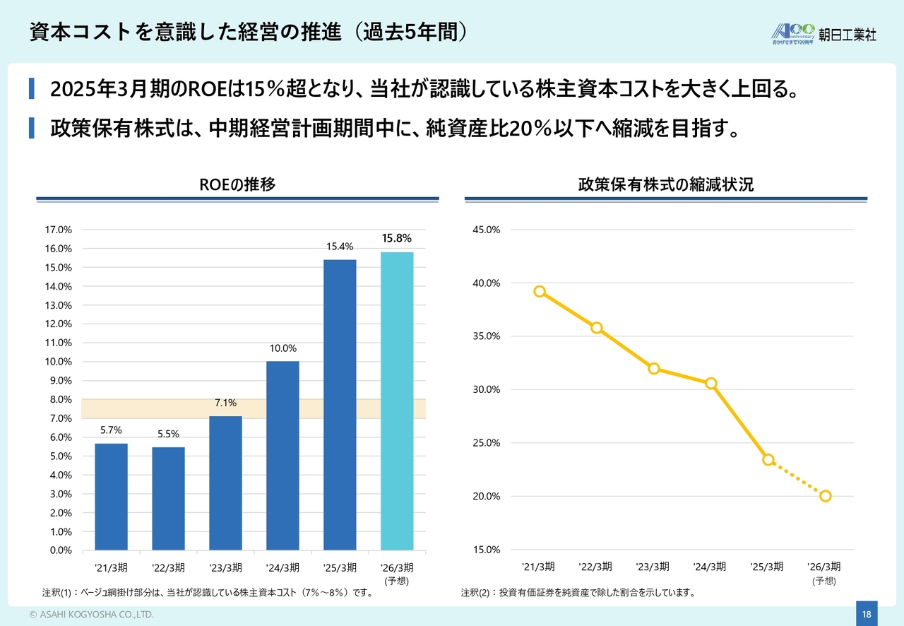 2025年3月期のROEは15パーセントを超え、弊社が認識している株主資本コストを大きく上回る水準で推移しています。