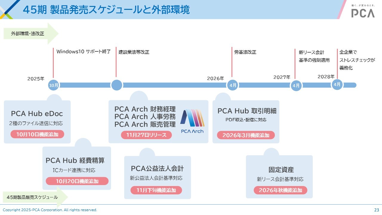そして、「PCA Arch」についてですが、11月27日に「PCA Arch 財務経理」「PCA Arch 人事労務」「PCA Arch 販売管理」の3カテゴリでリリースします。