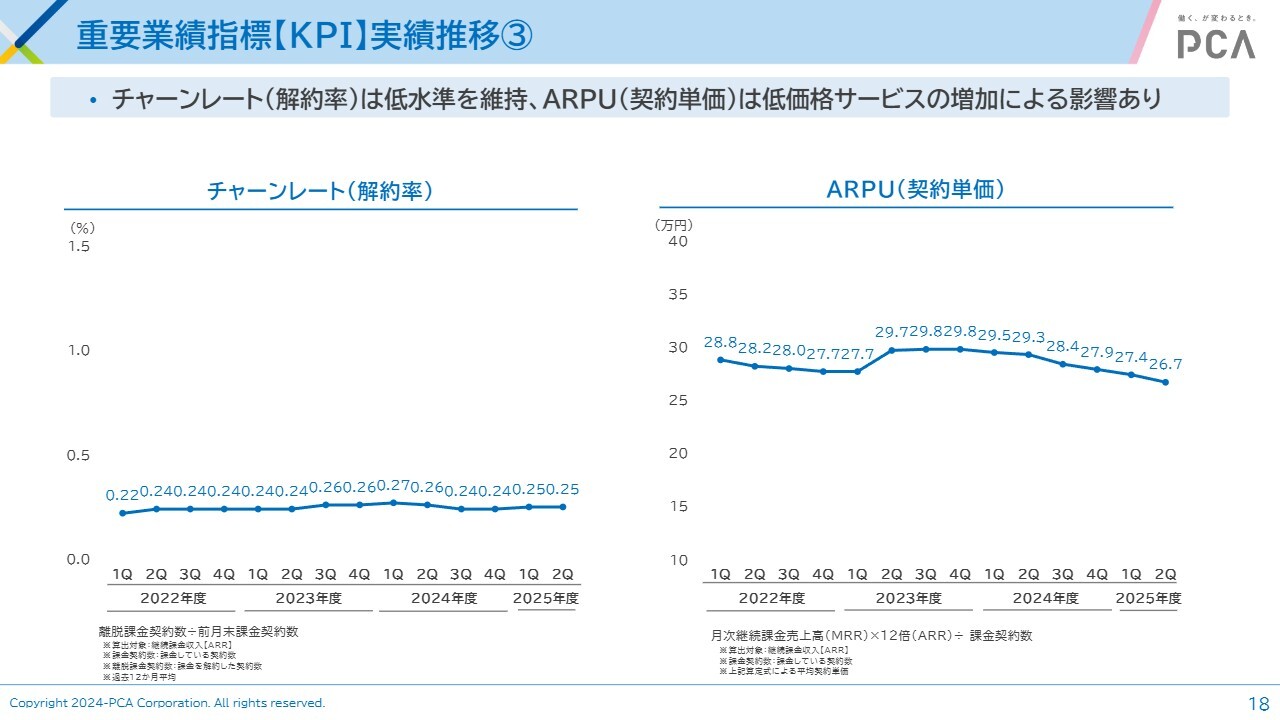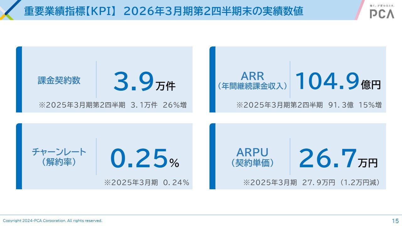 ただし、このARRの増加率は15パーセントであり、契約数の増加率である26パーセントに比べると低い状況です。この点はどうしても単価の低下が影響していると言えます。