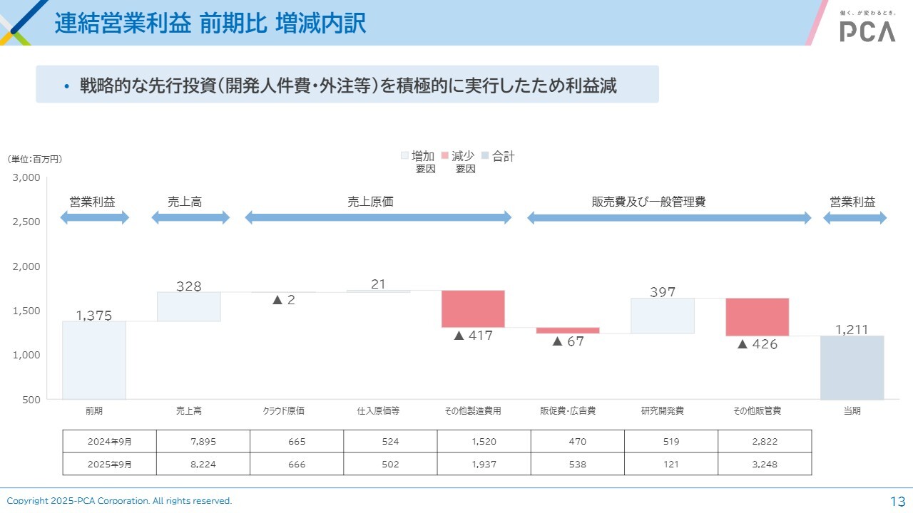 ただし、この経費の伸びは、主に開発に関わる人件費や外注費です。開発を強化することは、この数年、当社にとって避けては通れない道だと考えています。そのため、積極的な経費の増加は決して間違った判断ではないと認識しています。この利益減少については、みなさまにもご理解いただければと思います。