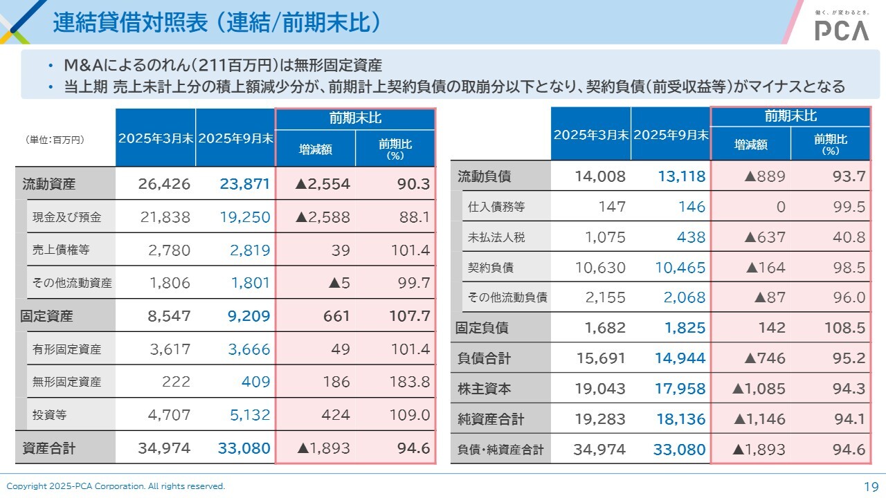 1点目は、今回のM&Aに伴ってのれんが発生しており、2億1,100万円が固定資産の無形固定資産に計上されています。そのため、無形固定資産が2億円近く増加しました。