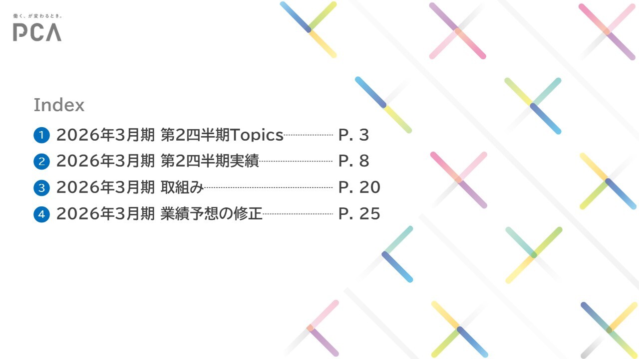 佐藤文昭氏:みなさま、こんにちは。ピー・シー・エー株式会社代表取締役社長の佐藤です。これから、2026年3月期ピー・シー・エー第2四半期決算説明会を始めます。