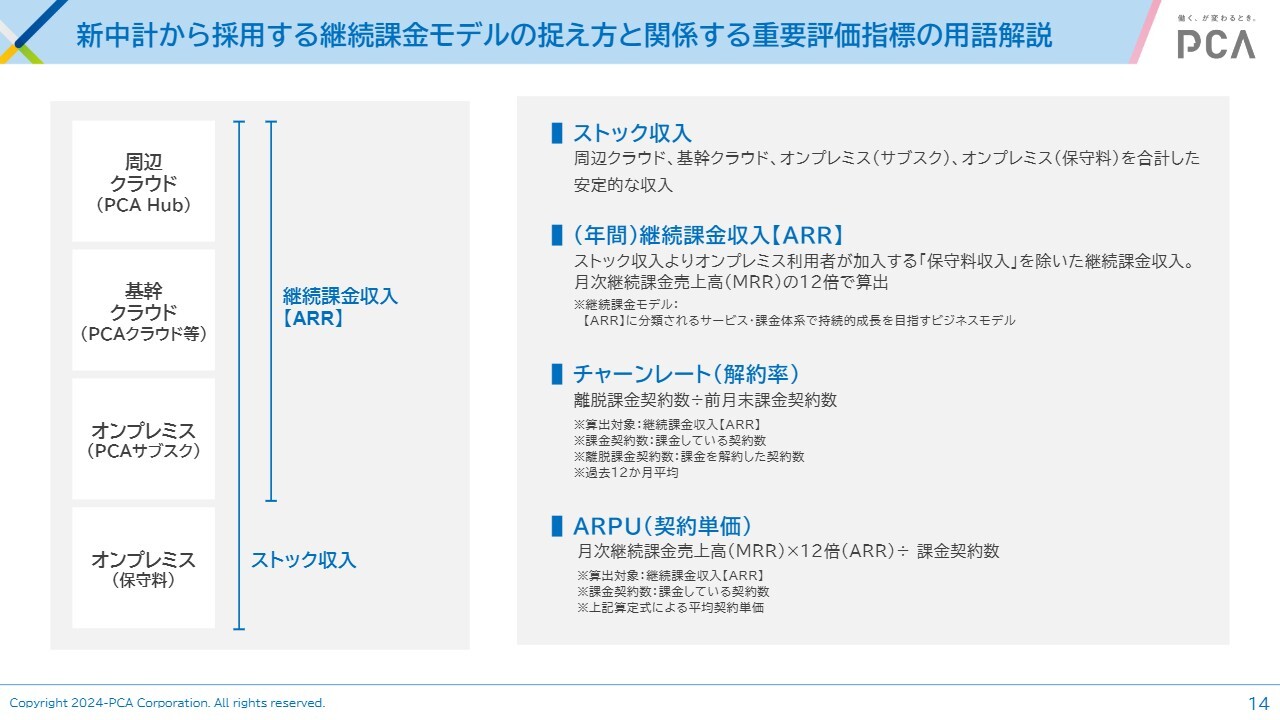 新中計から採用する継続課金モデルの捉え方と関係する重要評価指標の用語解説