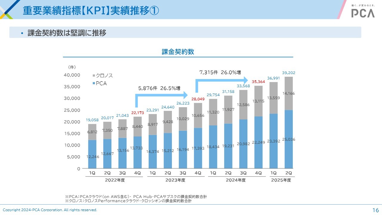 当社は、この契約を増やすために、サービスの幅を広げる取り組みを進めています。従来のクラウドに加えて、周辺サービスやハブ、さらにオンプレミスのサブスクリプションモデルである「PCAサブスク」を展開しています。「PCAサブスク」は従来のクラウドモデルに比べて単価がどうしても安くなりますが、全体としてクラウド・サブスクリプション契約を増やしていくことが最も重要だと考えています。
