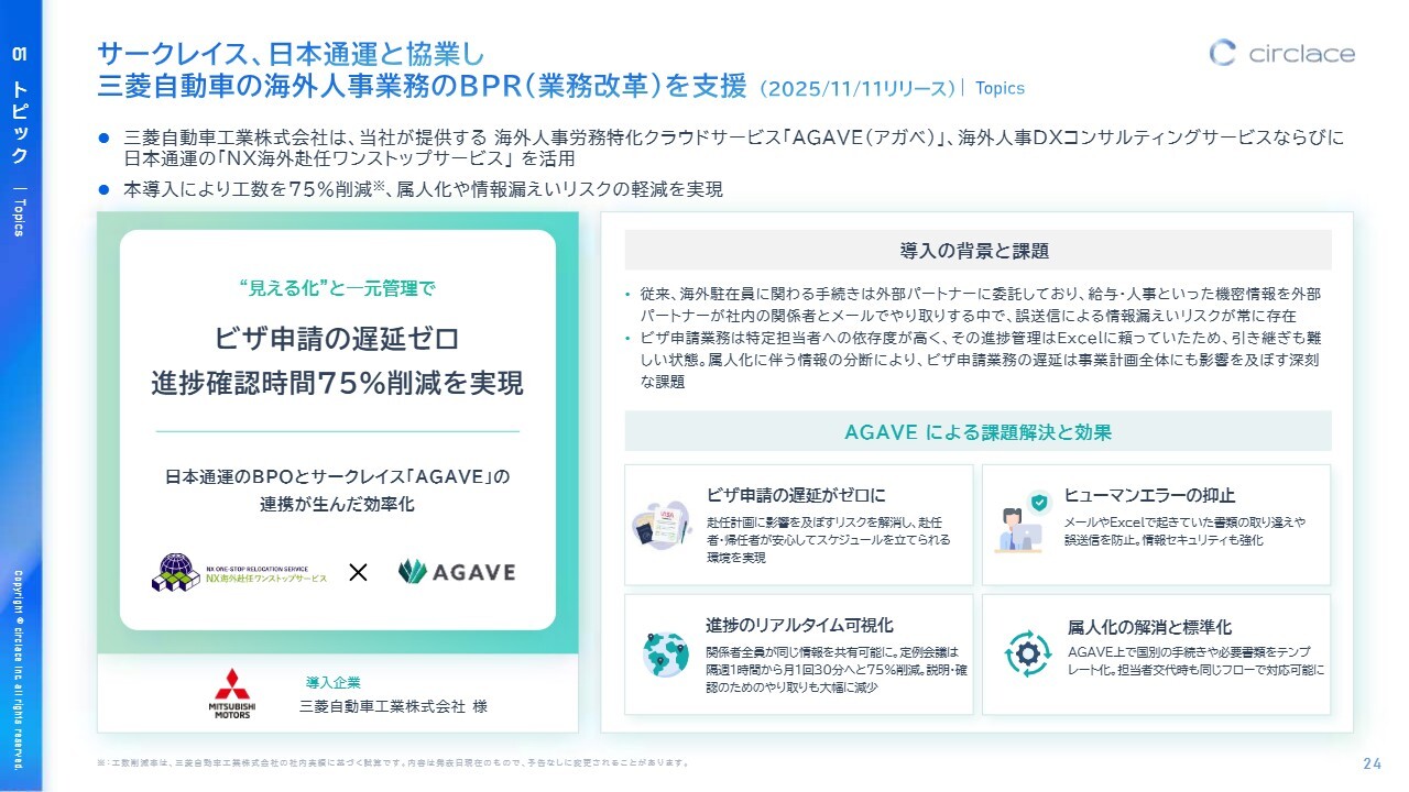 サークレイス、日本通運と協業し三菱自動車の海外人事業務のBPR(業務改革)を支援 (2025/11/11リリース)