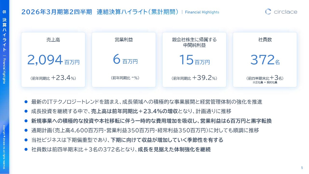 古川光瑛氏:サークレイス株式会社取締役CFOの古川光瑛です。2026年3月期第2四半期の決算についてご説明します。