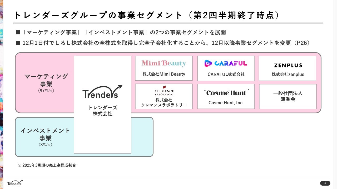 トレンダーズグループの事業セグメント(第2四半期終了時点)