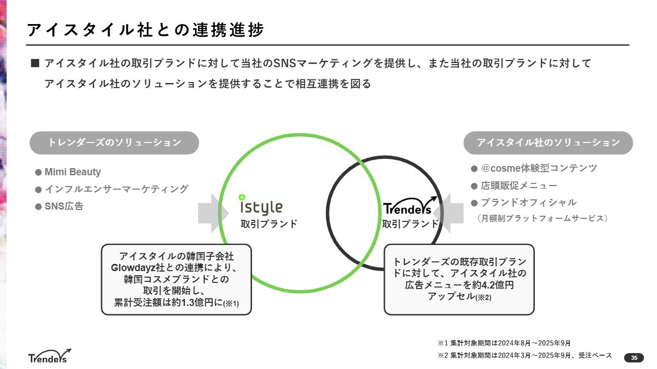 アイスタイル社との連携では、アイスタイル社の取引ブランドに対して当社のソリューションを提供する、または当社の取引ブランドに対してアイスタイル社のソリューションを提供するといった相互連携を進めています。