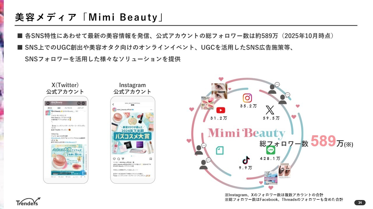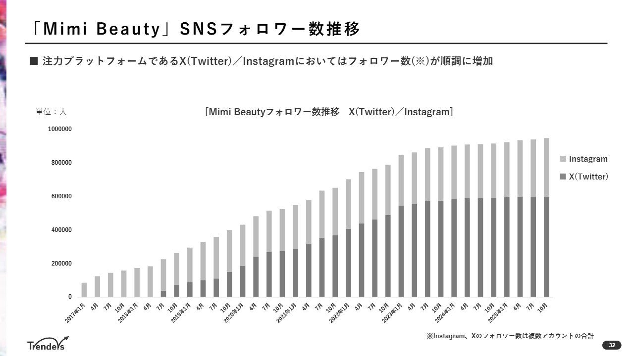 美容メディア「Mimi Beauty」は、直近ではSNS公式アカウントの総フォロワー数が589万に達し、600万弱まで成長しているメディアです。