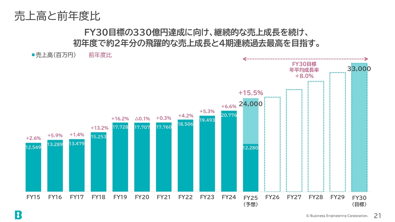 この計画の初年度に当たる今年度では、2030年度目標に向けた最初の2年分に相当する売上成長を見込み、大きな進捗を予想しています。
