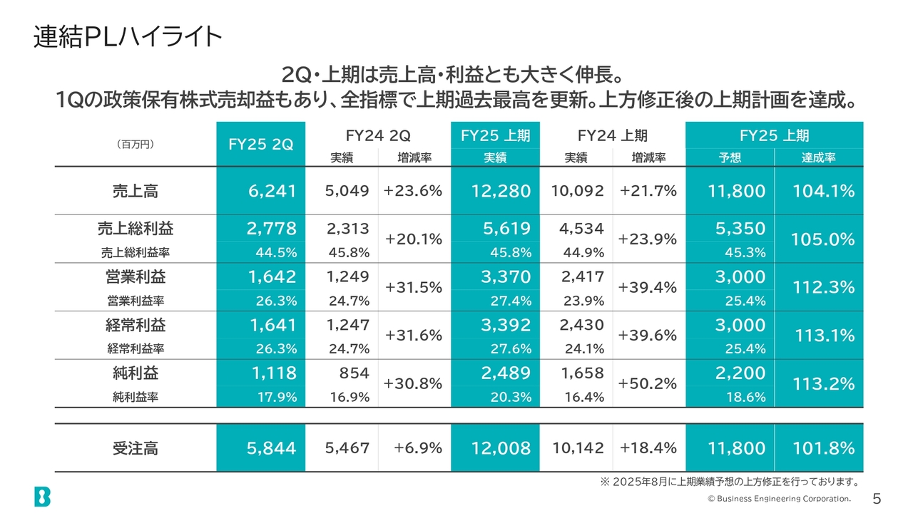 【QAあり】ビジネスエンジニアリング、売上高・各段階利益・受注高のすべて過去最高を記録 業績予想を全項目で上方修正