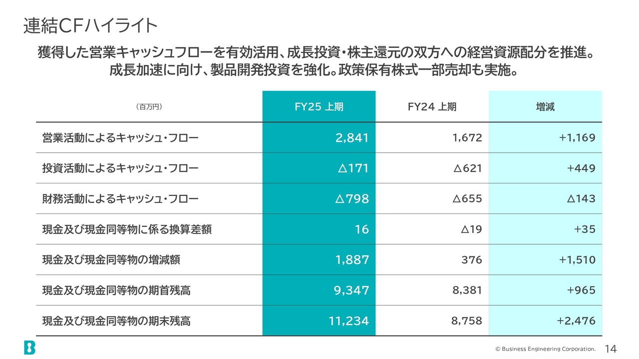 スライドは連結キャッシュフローのハイライトです。こちらの説明は割愛します。
