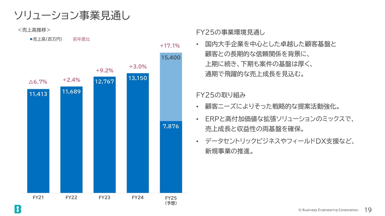ソリューション事業の見通しについてですが、引き続きお客さまからの引き合いは堅調であると考えています。