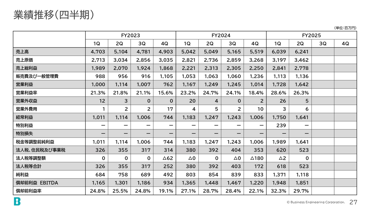 以上をもちまして、私どもビジネスエンジニアリングの2026年3月期第2四半期の決算説明を終了します。ありがとうございました。