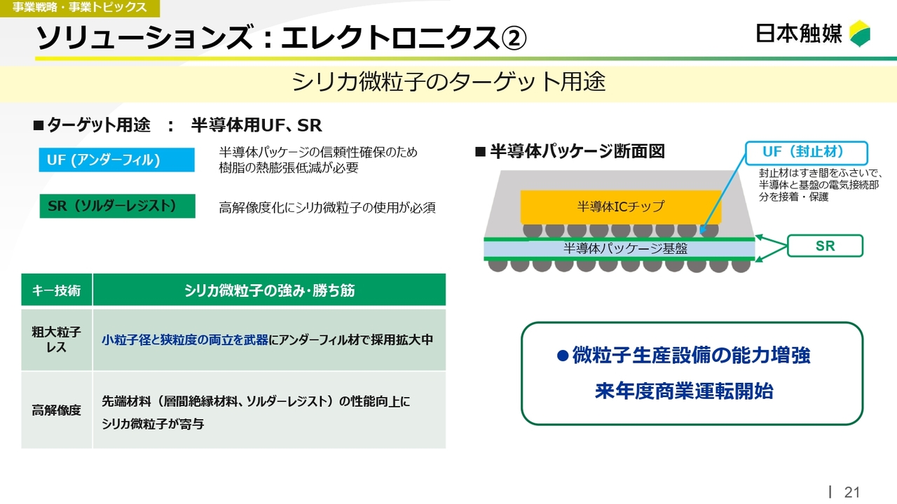 また、微粒子についてもディスプレイや半導体用途で需要が伸びており、今後は製造設備の能力増強を進め、拡販を目指します。