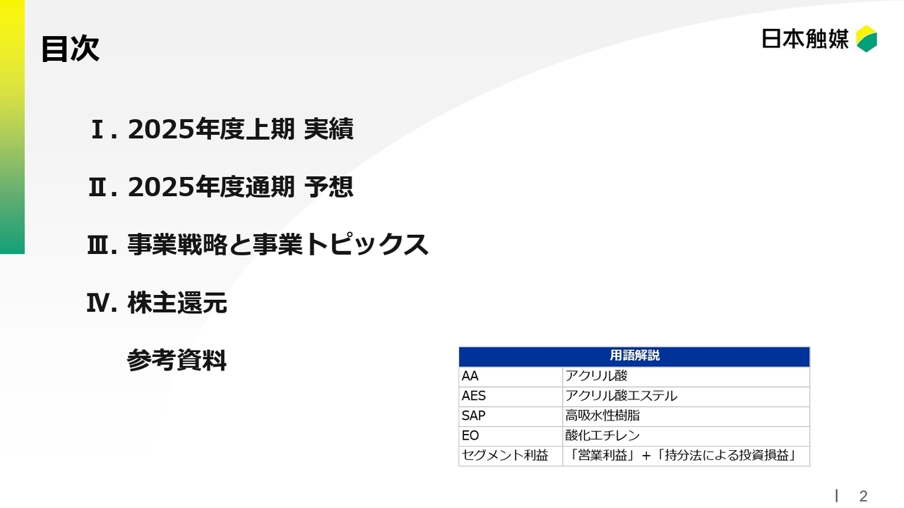 しかし足元を見てみると、界面活性剤の汎用品の状況が想定より悪化しており、アクリル酸エステルの状況も同様です。また、先ほどお話しされたSAPの需要拡大に関しても、想定より悪い結果となっています。そのため、外部環境は当初想定よりも厳しい状況にあるように感じています。
