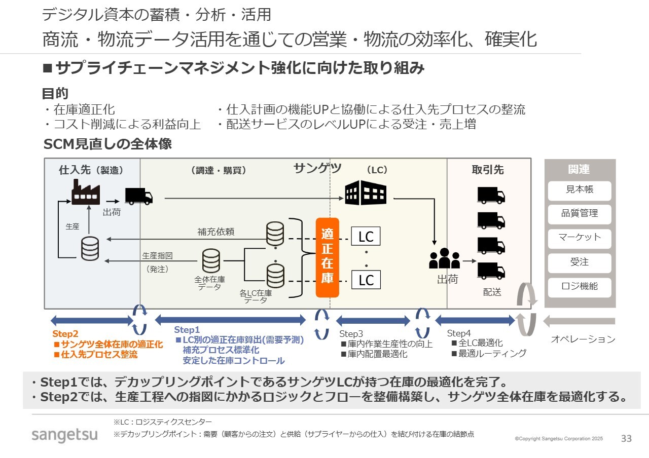 サプライチェーンマネジメントは競争力の源泉であるため、この強化を引き続き優先度高く進めていきたいと考えています。