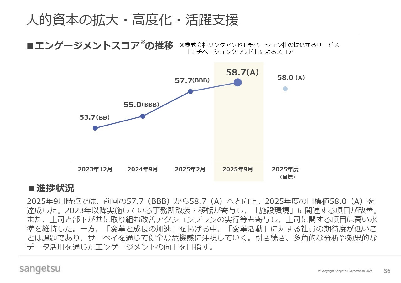 この点において、エンゲージメントスコアが向上していることは、取り組んできた方向性が正しい証だと判断しています。