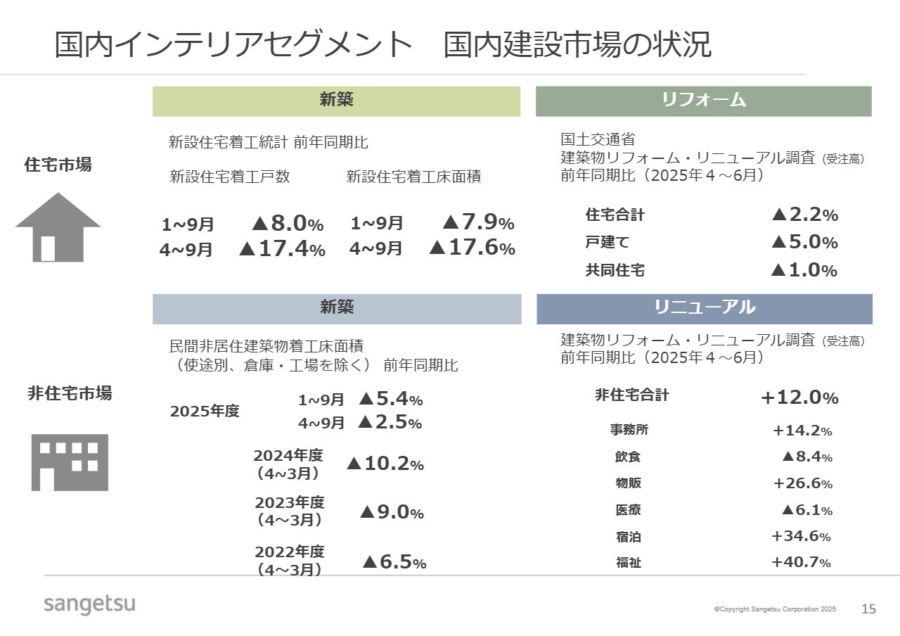 国内インテリアセグメント 国内建設市場の状況