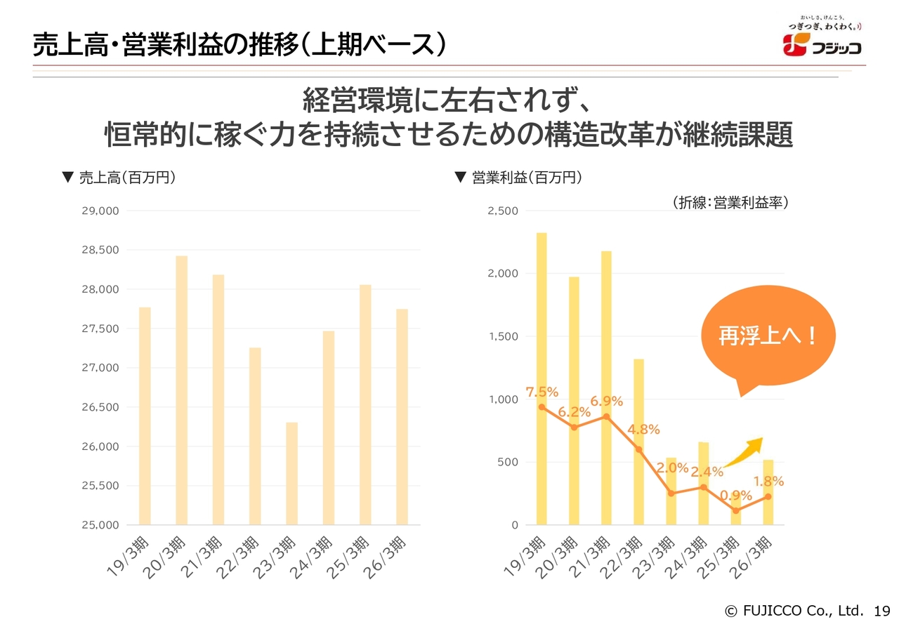 上期は、春の値上げの影響で4月・5月は物量が減少し、厳しい状況でした。しかし、その後は回復傾向にあります。私たちの主な繁忙期は、年末やおせち需要に向けた時期です。現在、このトップラインの回復に向けてしっかりと取り組んでいます。