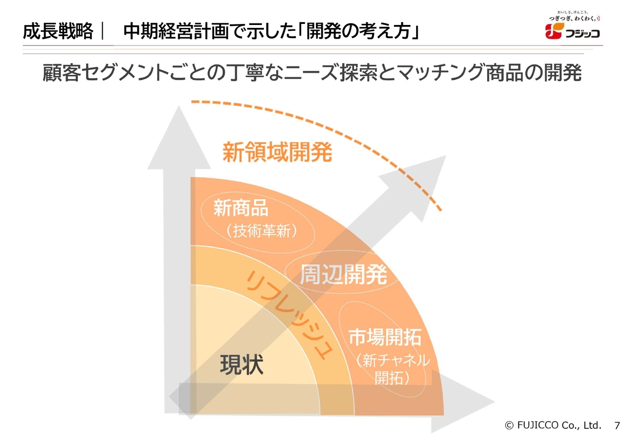 今後の成長戦略についてご説明します。開発の基本方針は、現状の商品群を次々にリニューアルし、リフレッシュさせ、リブランディングを進めていくことです。商品の革新を進めながら、現状の商品群を進化させ続けます。