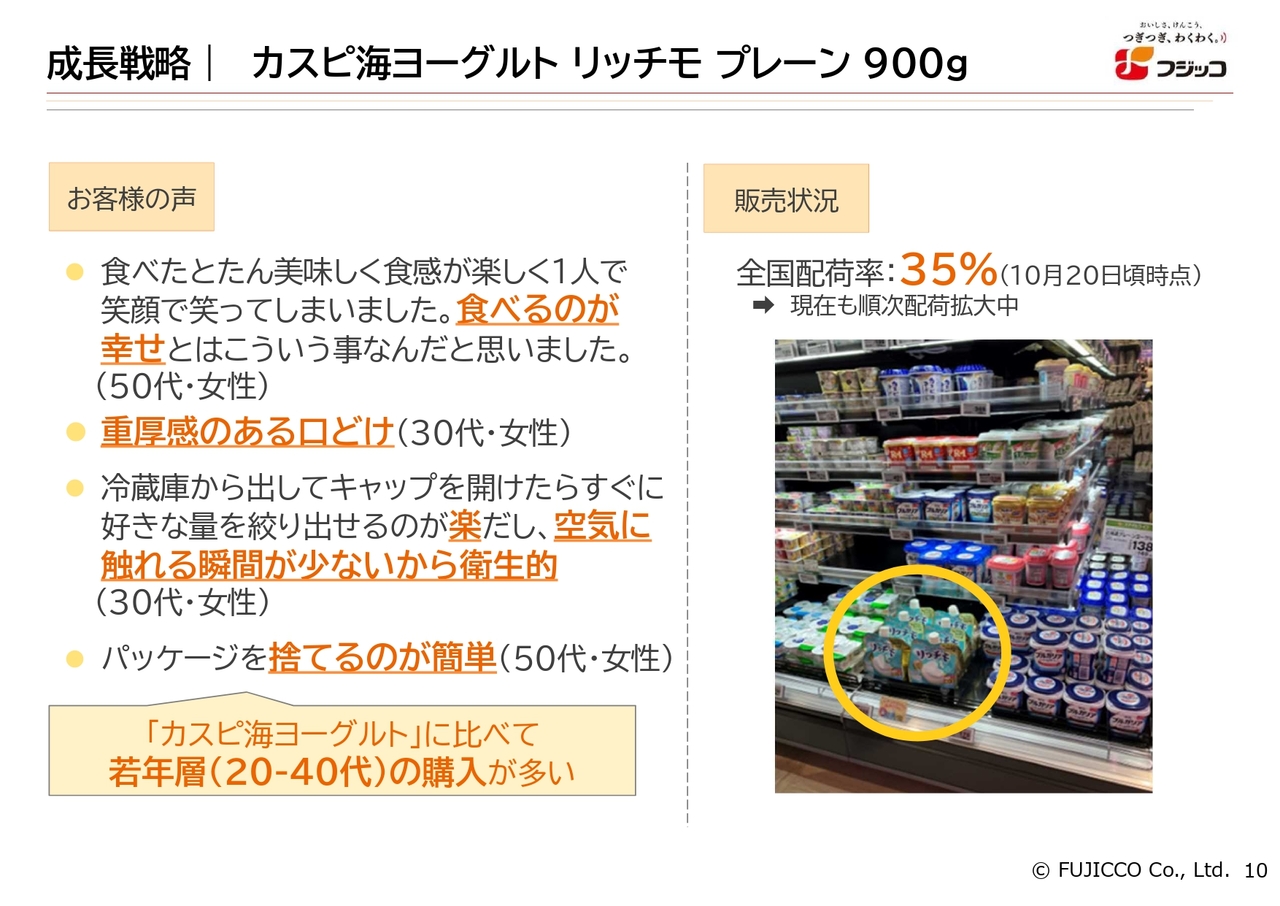 今後、この商品が牽引役となり、「カスピ海ヨーグルト」のさらなる底上げを期待しています。ヨーグルトはまだ成長分野の商品です。今後さらなる開発を進め、シリーズ化を目指します。